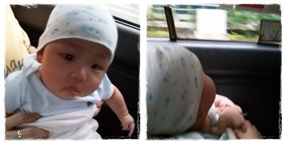 Look at the way he behaves whenever he's inside the stroller. Strangers keep looking and laugh saying how cute he is ... -_-'' whenever I bring him out, be it shopping centre or just downstairs so I will just smile at them politely and then they will go 'girl huh?', 'cute baby girl', 'see, baby. Mei mei so cute' ...