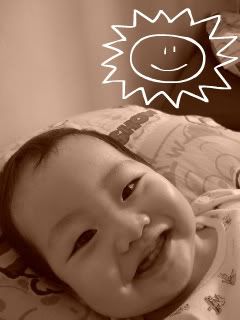 iKssy turns 9 months old today, still refuse to sit without support, but knows how to play peek-a-boo with me, sort of. Give him a handky or napkin, and he will hold it up and cover my face and let it down again. Loves to play hide and seek with a BOO! You hide, he seek and you appear with a boo and he will laugh.
