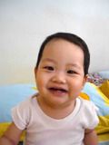 Two "bunny" teeth are sprouting and I think it is huge. Haha. Four teeth altogether. He's only starting to learn how to crawl, I really think that his progress is so slow. Everyday, we will give him some tummy time and he will only army crawl one or two "steps" then he started whining already. Impatient baby. He only knows how to use his hands and pull himself forward, doesn't really know how to use his legs. When he is trying to crawl backwards, he looks like a frog that doesn't know how to go backwards. Haha.