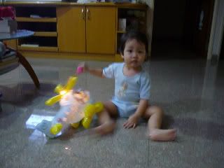B.Bee spoke his first mandarin word today which really caught all of us by surprise. Mummy was asking me and I replied her, then B.Bee repeated after me. It goes like this:-